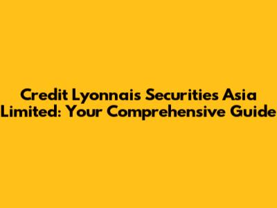 Hey guys! Ever heard of Credit Lyonnais Securities Asia Limited? It's a name that might pop up if you're diving into the world of finance, especially in the Asian markets. So, let's break it down and see what this company was all about.